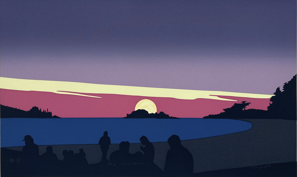 The Celebration was inspired by a large group involved in the production of my book, Solstice. We all enjoyed a camping trip in Clayoquot Sound near Tofino, British Columbia.