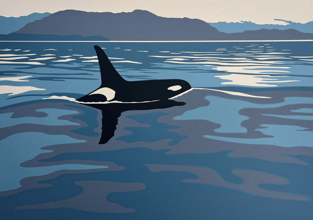 I have a friend, Cyril Aster, who shares photos from the area around my home village of Kitkatla (Gitxaala). Cyril shared a photograph of a Lone Bull orca in Grenville Channel, which moved me to create. I'm thankful for old friends who share a love of the outdoors and the sea.