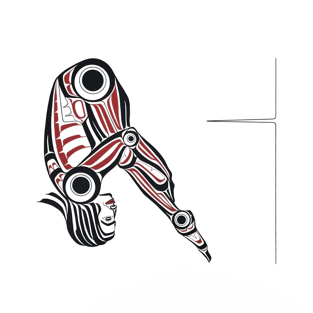 This is one of a set of three Limited Edition prints (Diver, Runner, and Lacrosse Player) created by Roy Henry Vickers in 1978 to commemorate the Commonwealth Games held in Edmonton in August of that year.
