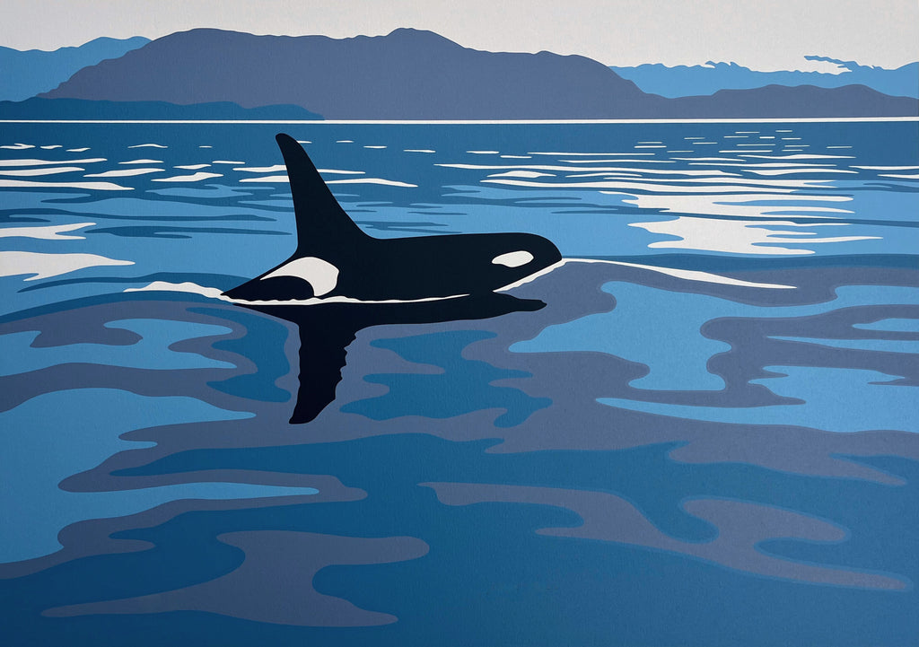 I have a friend, Cyril Aster, who shares photos from the area around my home village of Kitkatla (Gitxaala). Cyril shared a photograph of a Lone Bull orca in Grenville Channel, which moved me to create. I'm thankful for old friends who share a love of the outdoors and the sea.