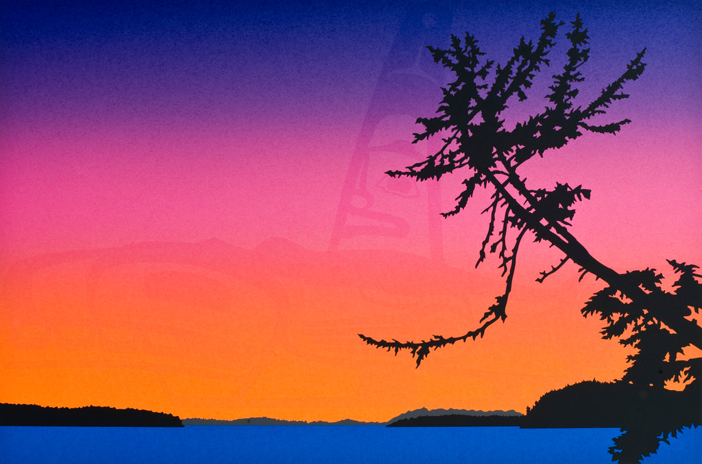 This print was inspired by our beautiful west coast sunsets looking northwest from Tonquin Beach.