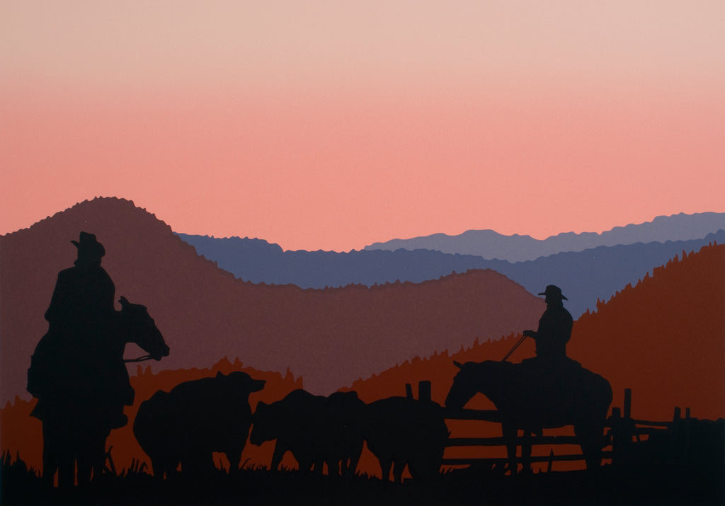 On my trips through the Cariboo, I stop at friends' place, the Machams, just south of Quesnel, for a visit and rest, and have enjoyed dinner and many a story. They raise red Angus cows, and their Ranch is called Stella Red Angus Ranch. They have a beautiful photo of cowboys working cattle in the cool of a summer evening, and it has inspired me to create an image that evokes many a memory.