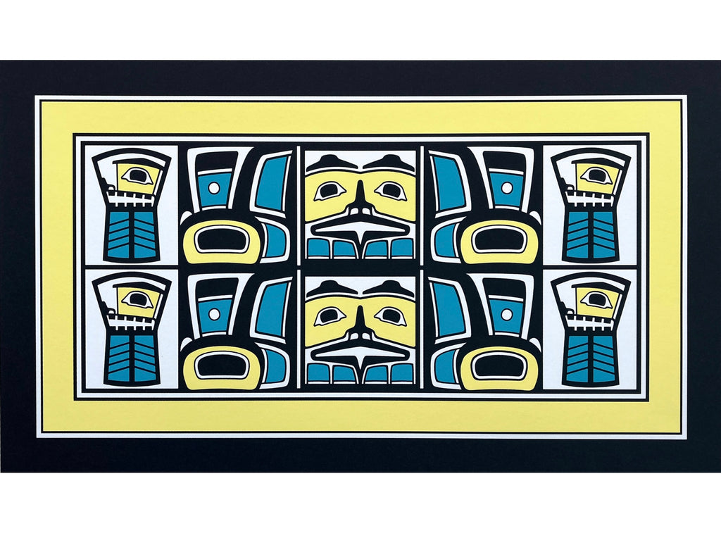 Generations before written history on the Northwest Coast, a type of weaving was practiced by the Tsimshian people of Kitkatla. This very complex weaving has been carried on by the Chilkat Tlinglit people and is known today as Chilkat Weaving. I have recently come to know a young Tsimshian man from Port Simpson, who is the first person I know of to have taken up this beautiful weaving style and continue it today. It is this man, William, who has inspired me to create some of my own designs for use in weavings. The first of these works is titled Copperman as that is my name. As a Hoylikila, I dance the dance of the ancients, which is always done while wearing the Chilkat weavings. I have not danced with the Chilkat as I am not that wealthy. As Tlakwakila (Copper Man), I will carry on the tradition of Chilkat with the help of many people and one day be able to dance with the Chilkat.