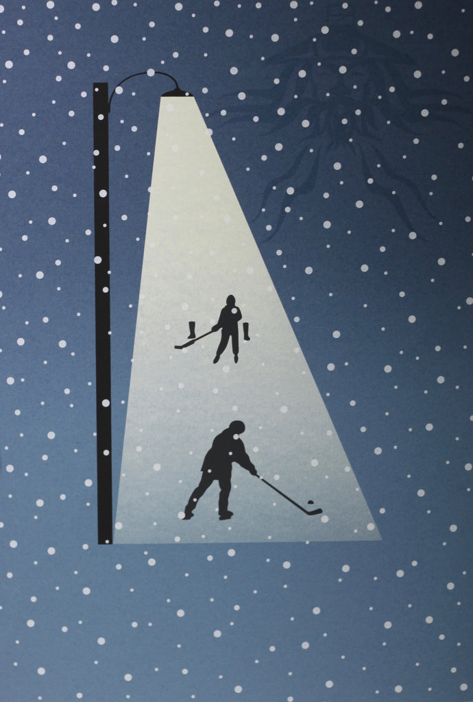 When we were children in Hazelton the winters were cold, the gravel streets were covered in snow, and the snow was smooth and hard enough to skate on. There was a streetlight close to our home so Mom could keep an eye on us. There was very little traffic at night so it was safe to play street hockey. We used a pair of Dad's gumboots for goalposts. We found buried horse manure in the snow, we called them "horse buns". Our hockey sticks were scrap wood nailed together.