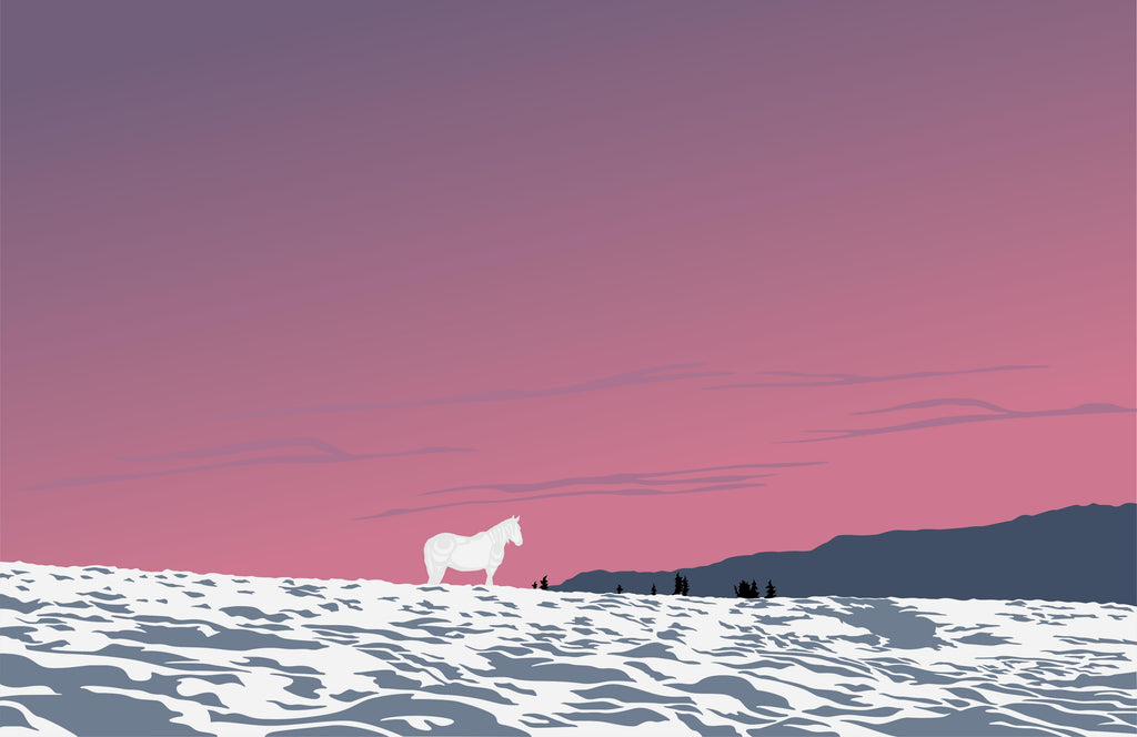 A couple of years ago we enjoyed a wonderful two horse open sleigh ride with Bryan Semeschuk, The ride was like being in a live Christmas Card. It was full of fun and laughter complete with a rest stop around a campfire with coffee, tea, and, hot chocolate as well as hotdogs roasted on the fire. Driving down the country road at the end of the day I spied this lone White Horse in a field. It appeared as the the horse was enjoying the sunbset at the end of the day as we were. The difference was that we were in a warm car headed home to the glow of a a fireplace and the horse was to spend the night out there on the hillside.